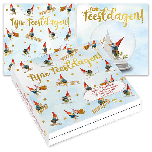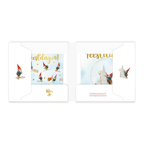 Kerstkaartenmapje van Rien Poortvliet de Kabouter met 10 (dubbele) wenskaarten en 10 enveloppen. De kaarten zijn 11,5 x11,5 cm